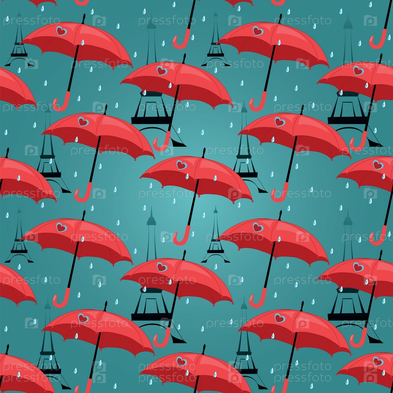 Фон с зонтами и Эйфелевыми башнями