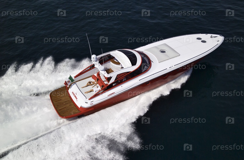 Роскошная яхта у берегов Неаполя, Италия (верфь Каньерри ди Байа), вид сверху