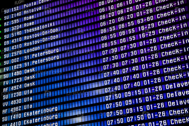 Дисплей с расписанием вылетов в аэропорту