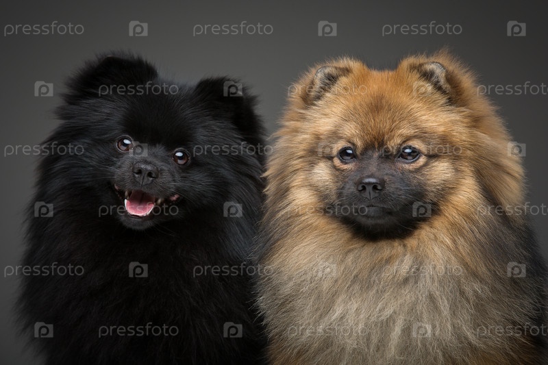 Шпиц собаки на сером фоне