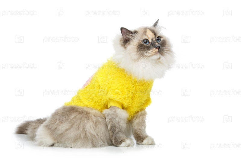 Бирма кошка в желтом свитере