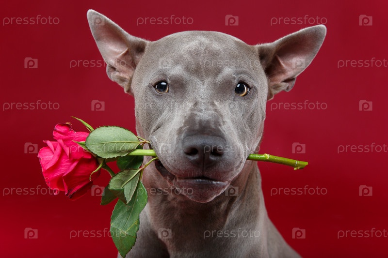 Собака с розой