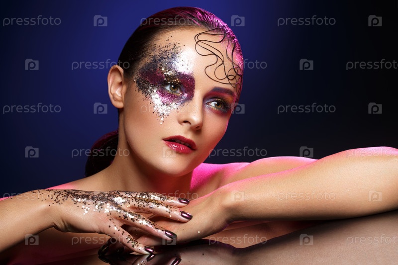 Красивая женщина с ярким макияжем с блеском