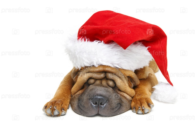 Шарпей щенок в шляпе Рождество