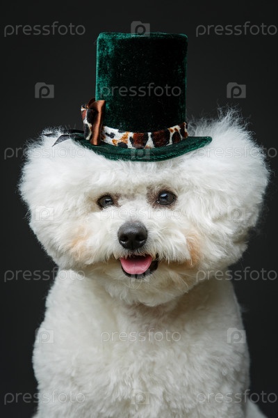 Бишон фризе собака в милой шляпе