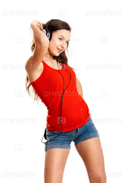 Молодая девушка слушает музыку