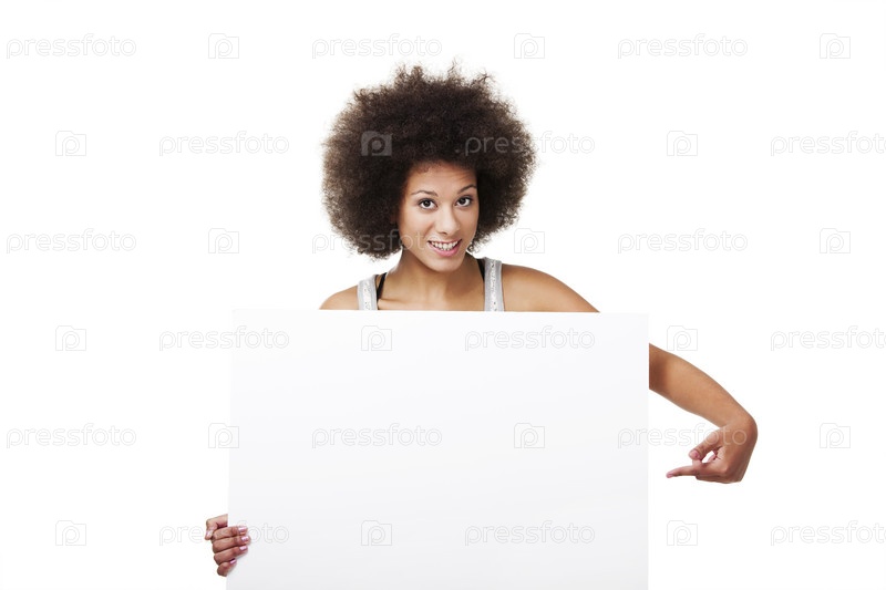 Женщина держит белый плакат