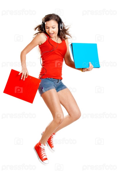 Молодая девушка слушает музыку