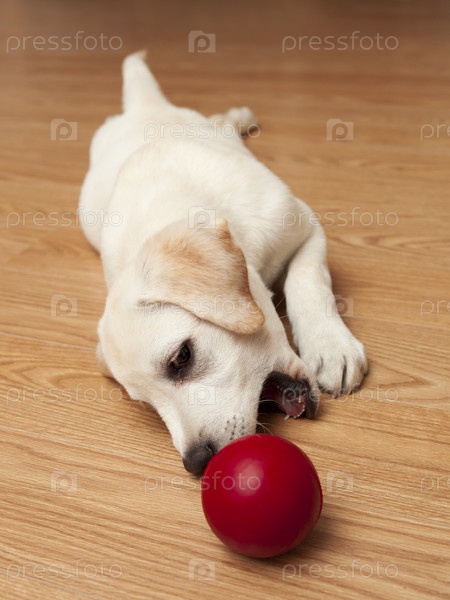 Щенок лабрадора играет