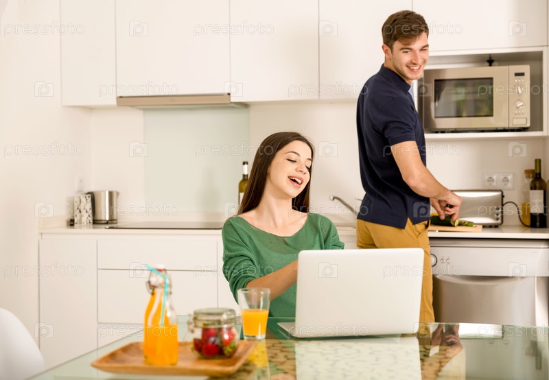 Молодая пара на кухне