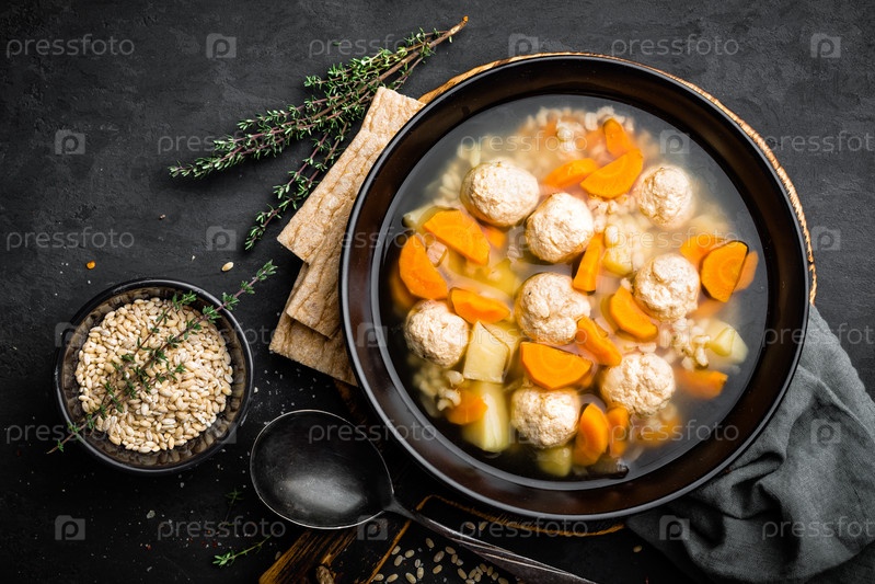 Свежий овощной суп с фрикадельками