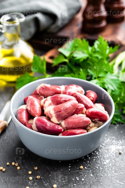 Свежие сырые куриные сердца