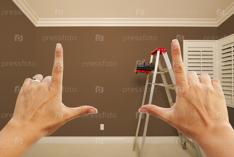 Женские руки, на фоне пустой комнаты