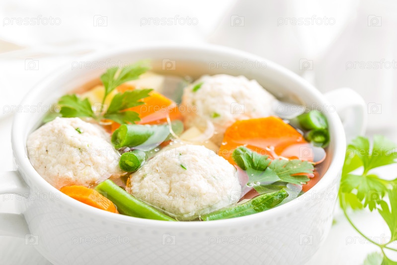 Свежий куриный суп с овощами и фрикадельками