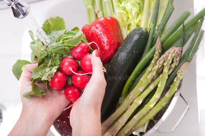 Женщина моет овощи