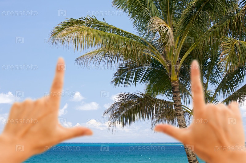 Руки на фоне моря и пальмы