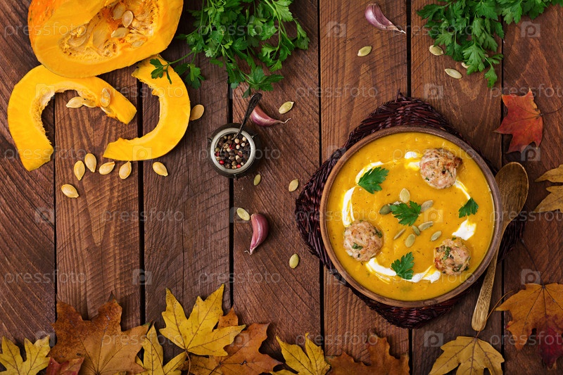 Вкусный крем суп из тыквы с фрикадельками
