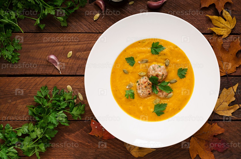 Вкусный крем суп из тыквы с фрикадельками