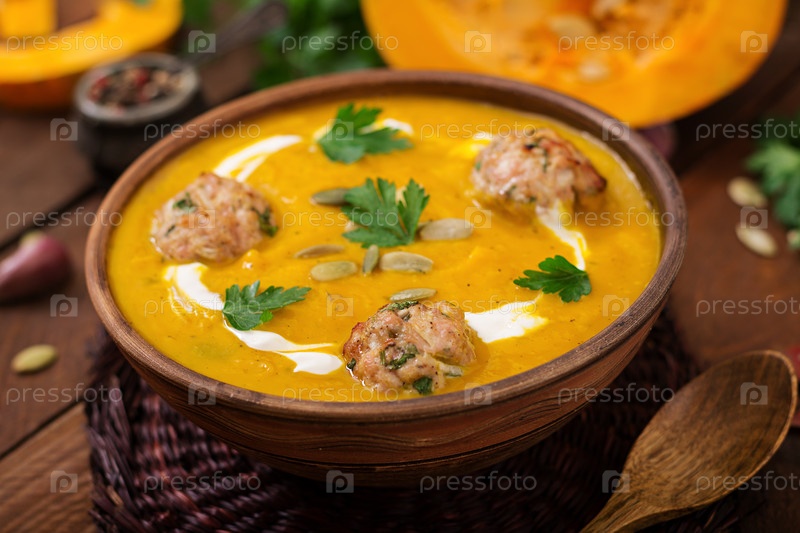 Вкусный крем суп из тыквы с фрикадельками