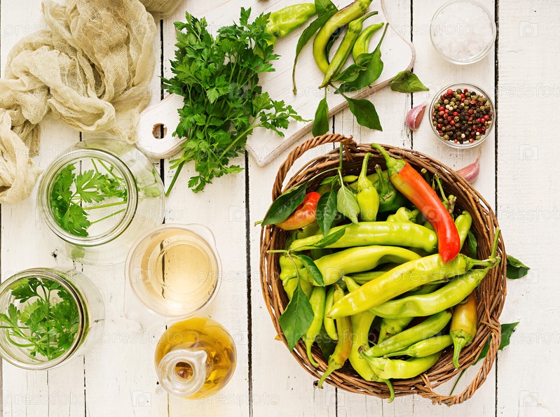 Зеленый перец чили в корзине