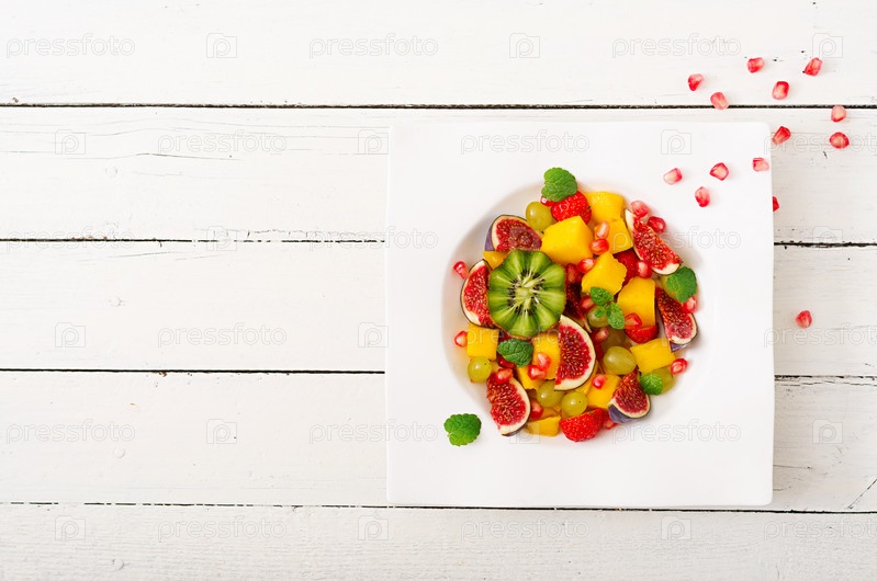 Фрукты и ягоды. Манго, киви, инжир, клубника, виноград, груша и апельсин