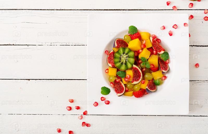 Фрукты и ягоды. Манго, киви, инжир, клубника, виноград, груша и апельсин