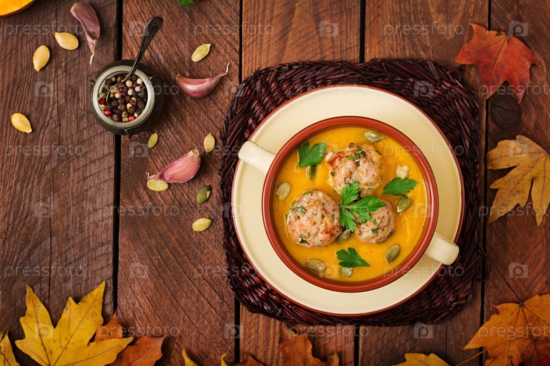 Вкусный крем суп из тыквы с фрикадельками
