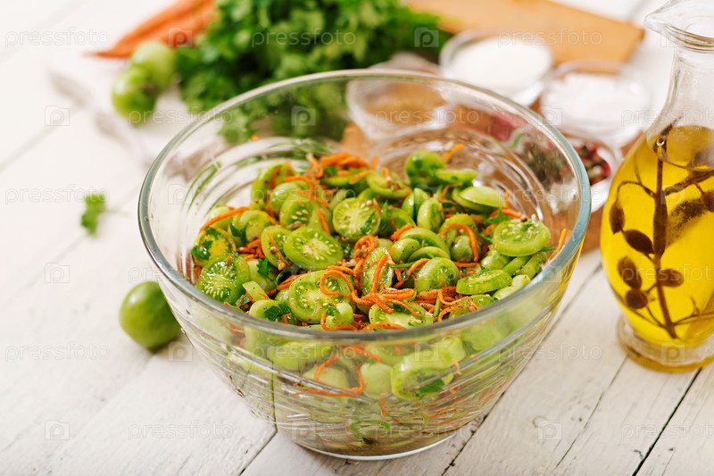 Корейский салат из зеленых помидоров и моркови