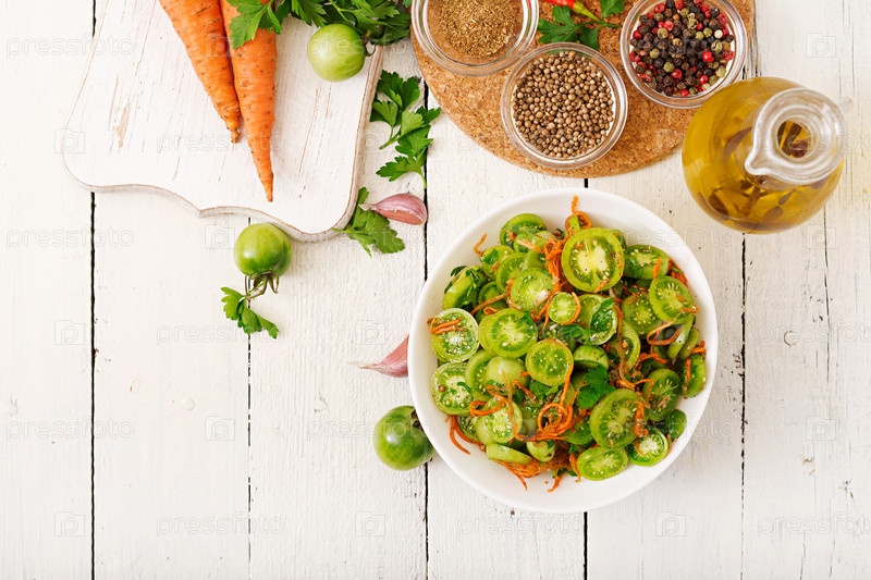 Корейский салат из зеленых помидоров