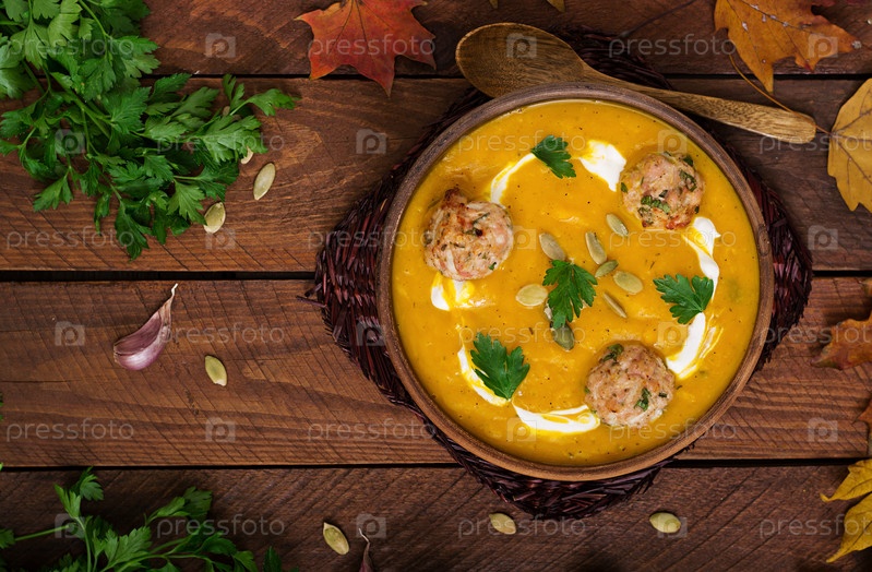 Вкусный крем суп из тыквы с фрикадельками