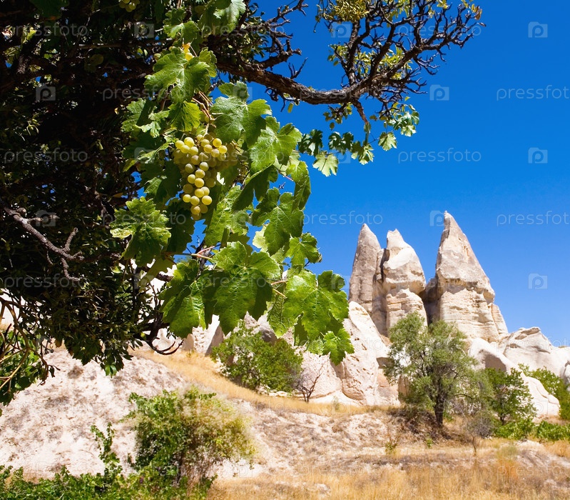 Виноградная лоза белого винограда на фоне скалы