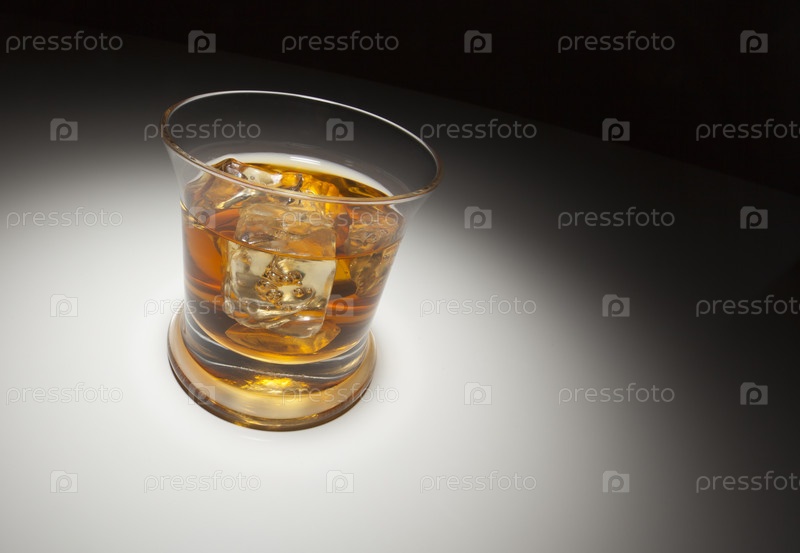 Стакан виски со льдом под лучом света