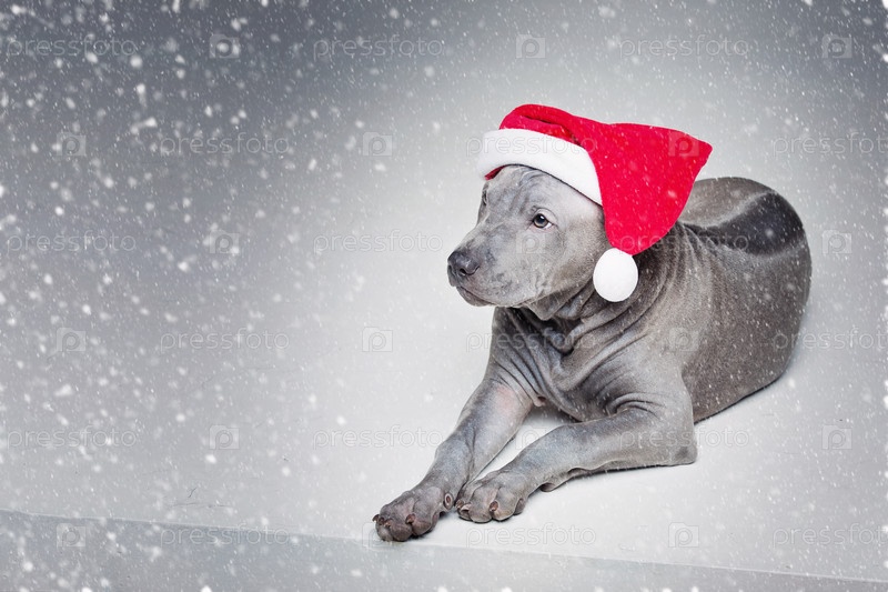 Тайский риджбек щенок в шляпе на Рождество