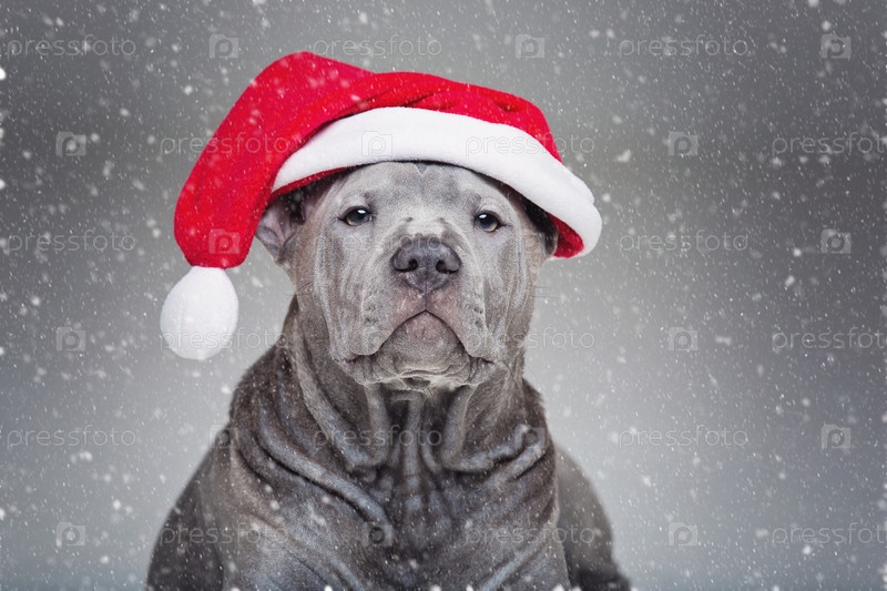 Тайский риджбек щенок в шляпе на Рождество
