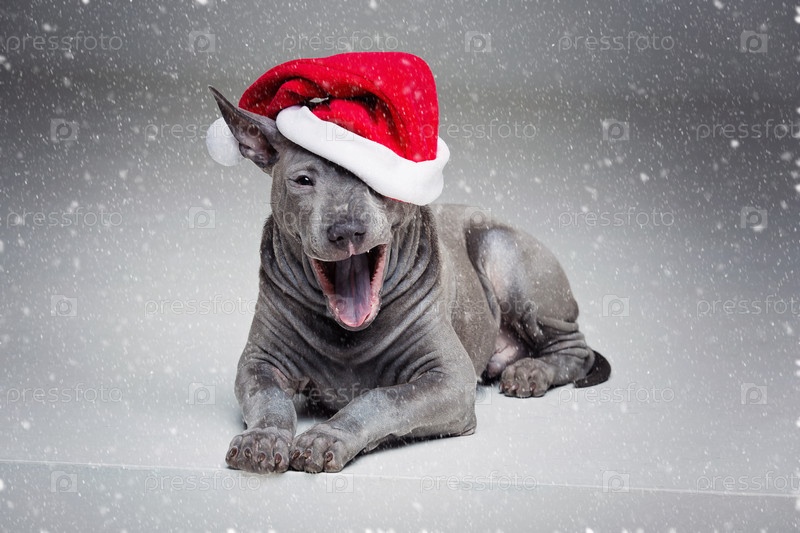 Тайский риджбек щенок в шляпе на Рождество