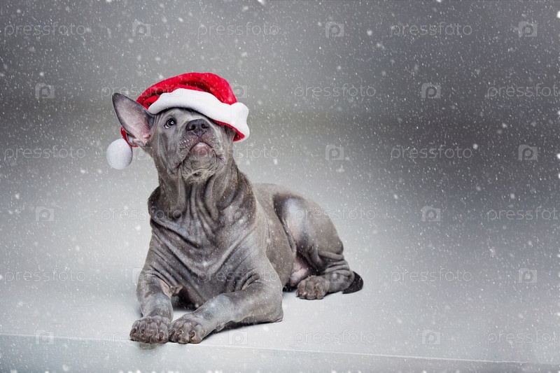 Тайский риджбек щенок в шляпе на Рождество