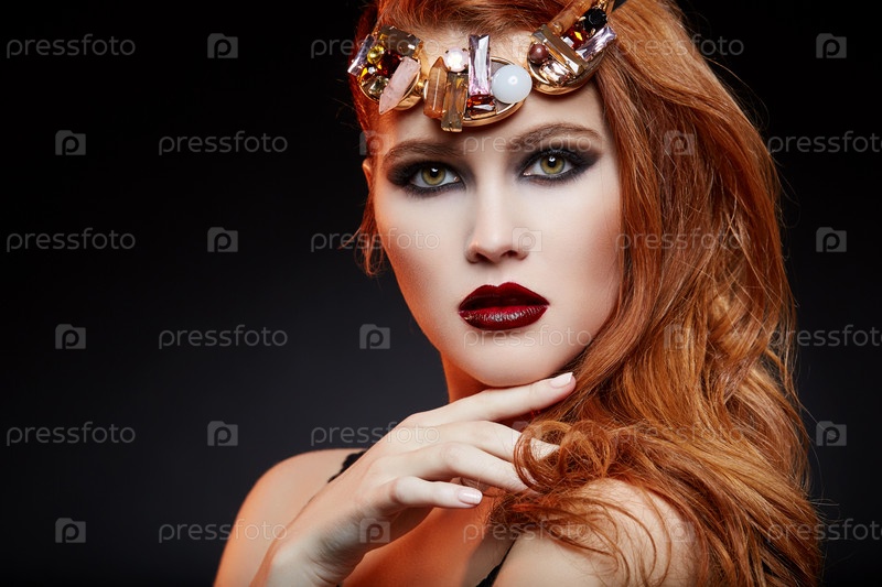 Красивая девушка с ярким макияжем и рыжими волосами