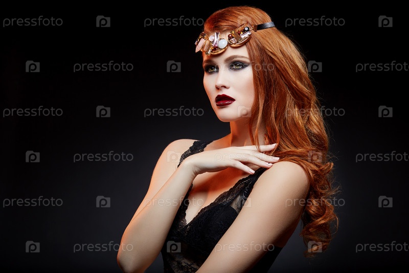 Красивая девушка с ярким макияжем и рыжими волосами