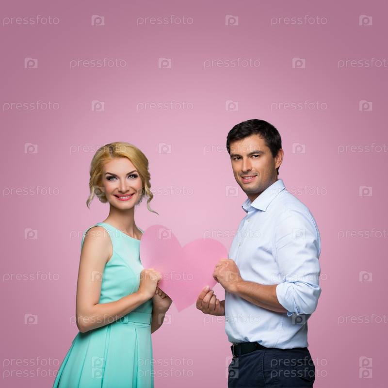 Красивая пара держит розовое сердце