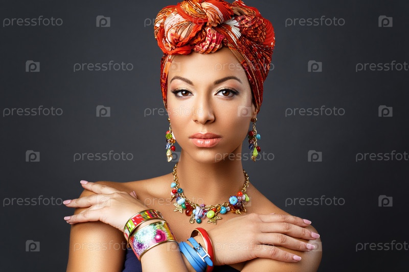 Красивая мулатка с тюрбаном на голове