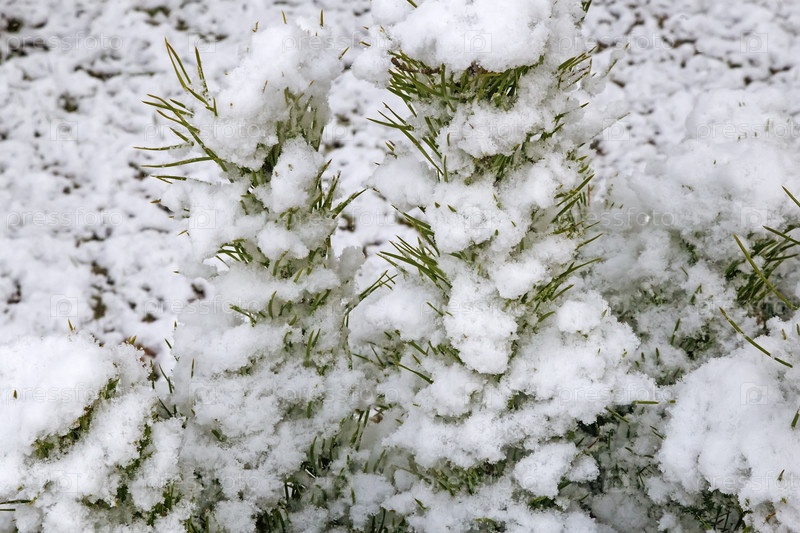 Еловая ветка, покрытая снегом
