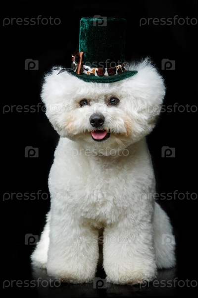 Бишон фризе собака в милой шляпе