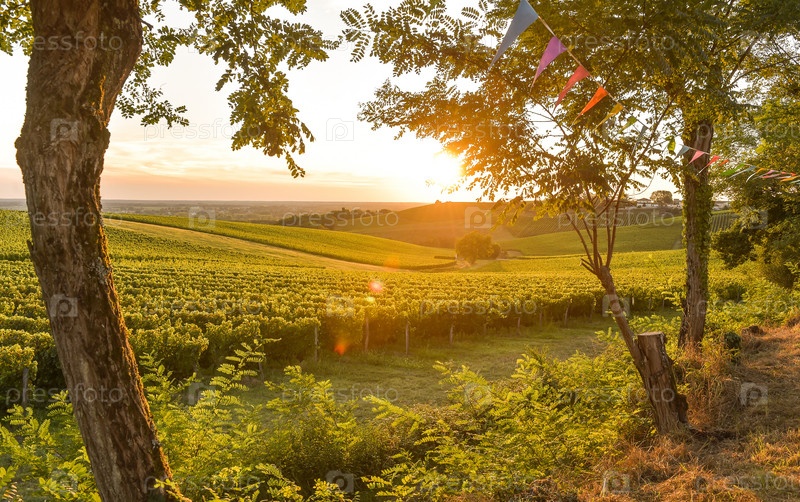 Закат в виноградниках Бордо, Франции