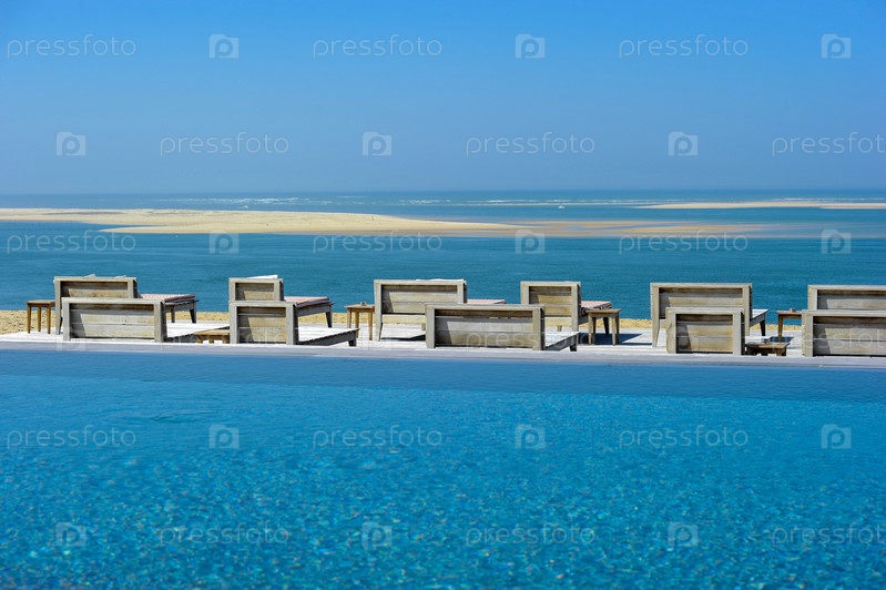 Красивый тропический пляж с креслами