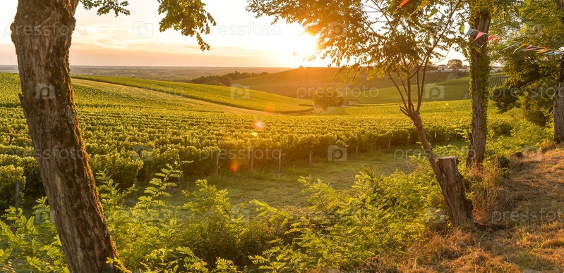 Закат в виноградниках Бордо, Франции