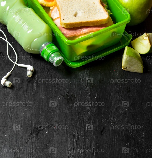 Утренний пикник. Бутерброды, молочный коктейль и фрукты