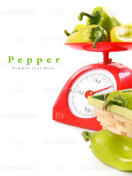 Перец на весах и в корзине