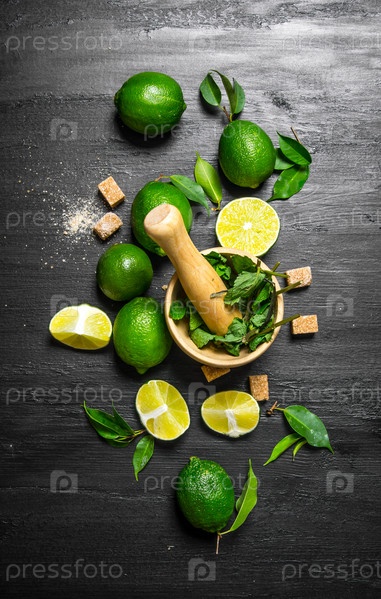 Фон с мятой и ломтиками лайма