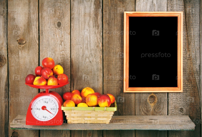 Абрикосы на весах и в корзине