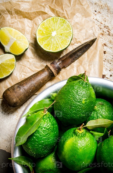 Ломтики лайма с ножом и чашей